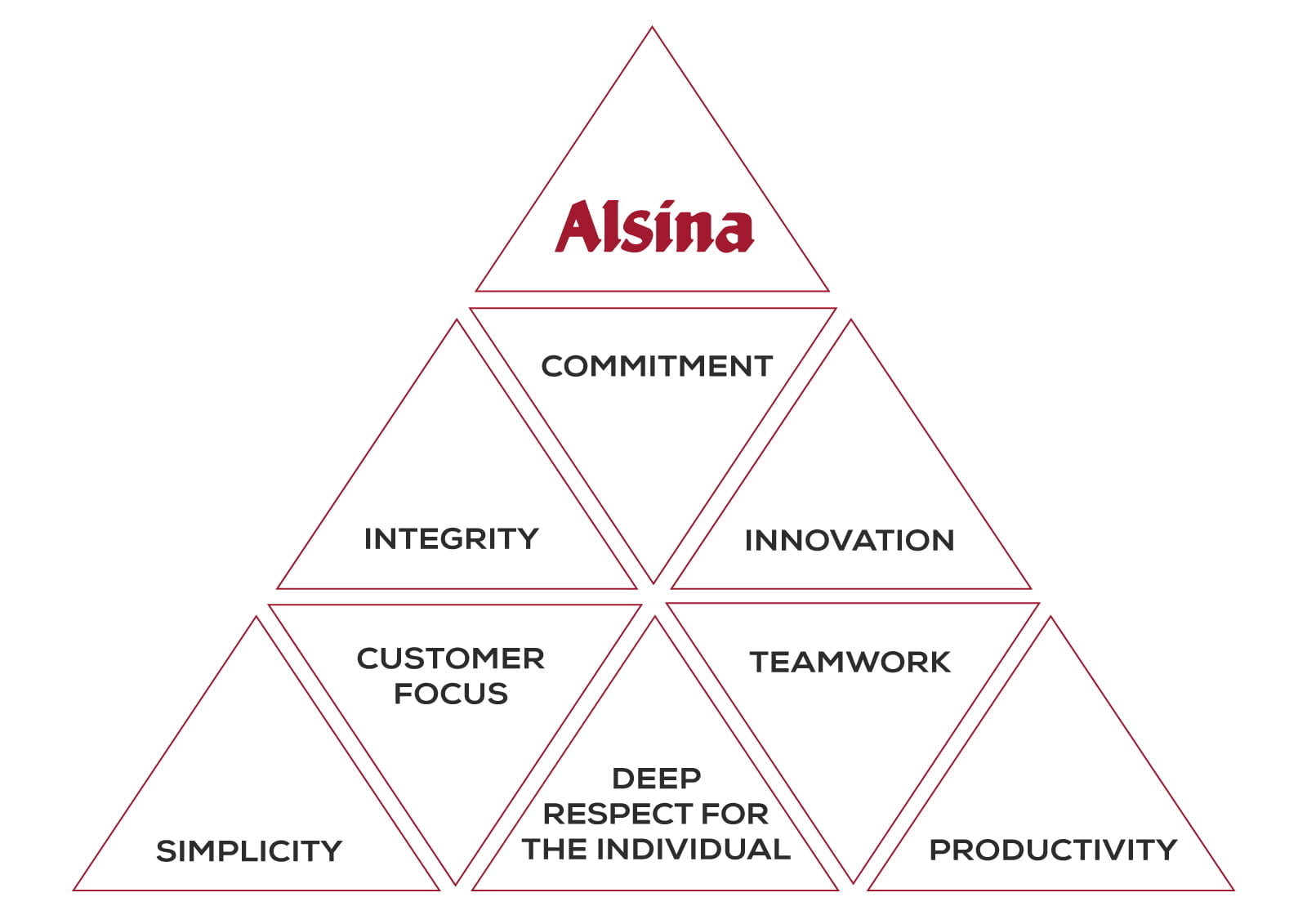 - Integrity: We value integrity above all else and this means being sincere, honest and true to our word. Alsina has a crime prevention model aimed at identifying potential risks throughout the value chain to avoid unethical or illicit behavior.
